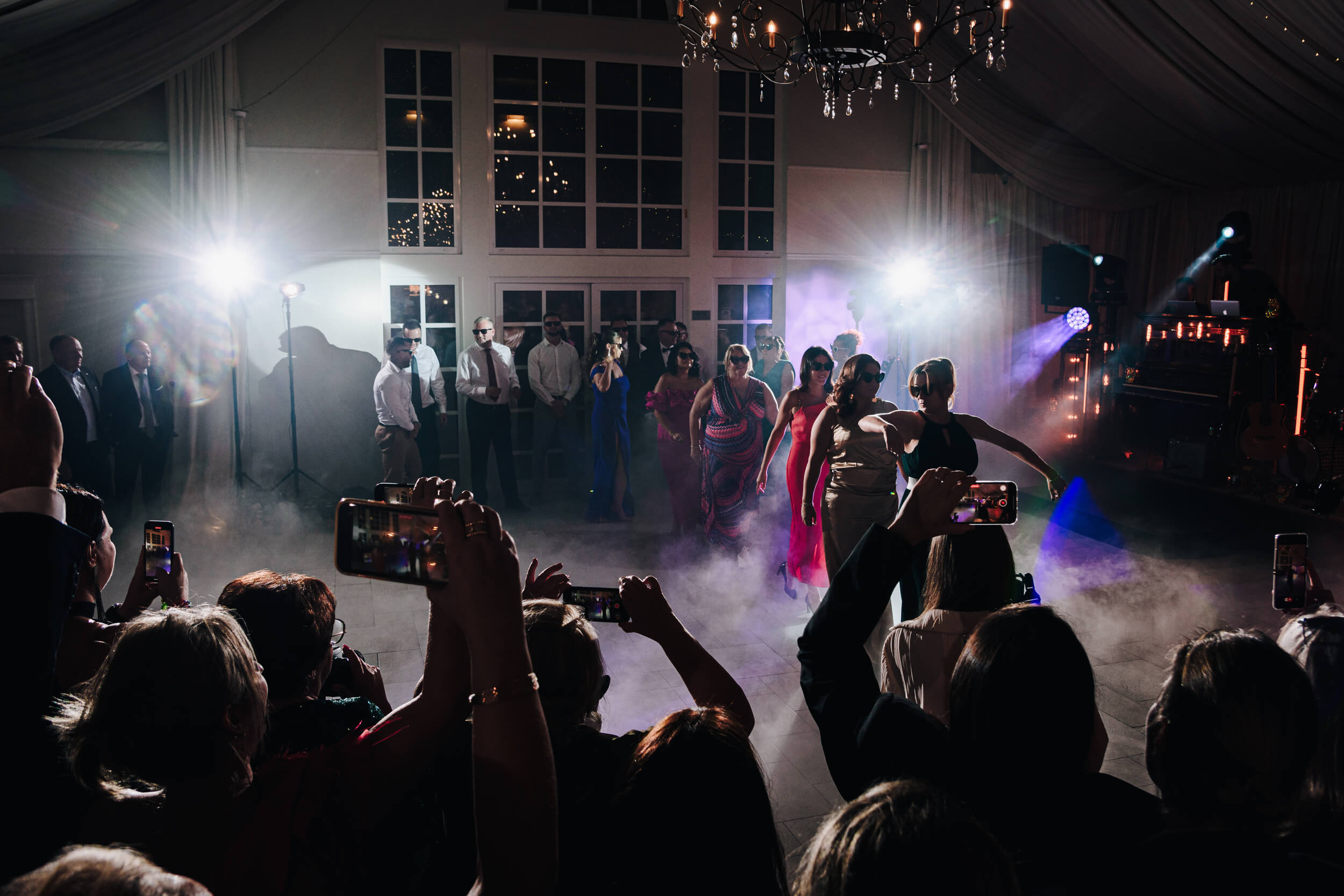 - pierwszym tańcu – mogę wtedy romantycznie podkreślić tańcząca na środku młodą parę;